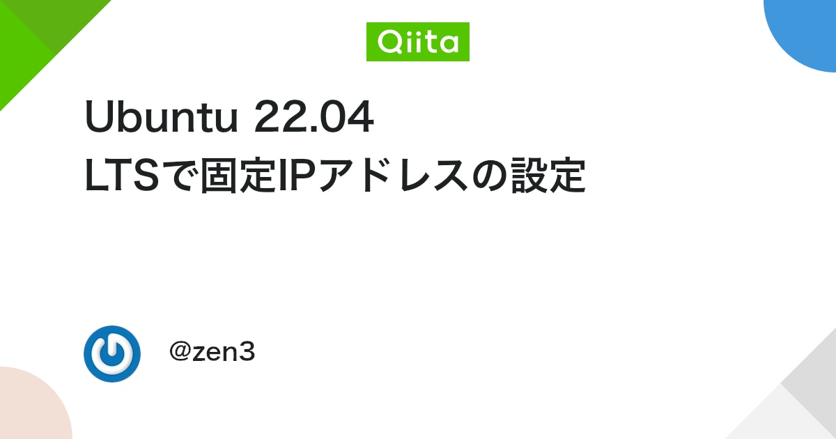 Ubuntu 22.04 LTSで固定IPアドレスの設定 - Qiita
